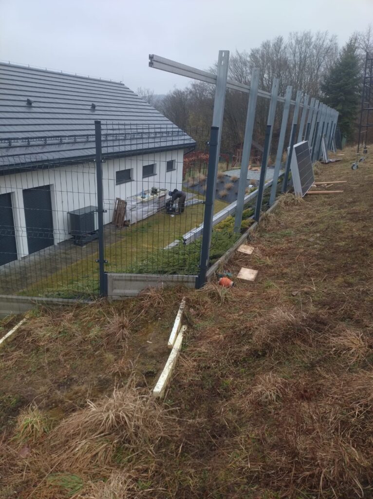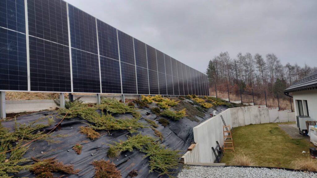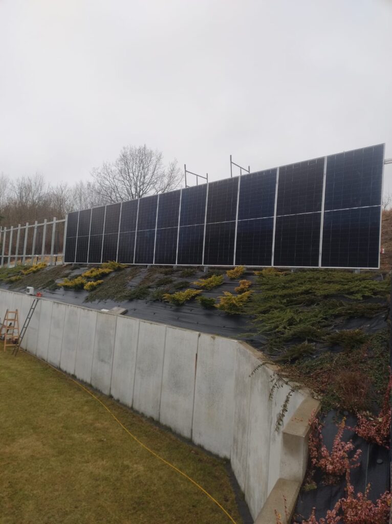 Instalacja fotowoltaiczna o mocy 12 kW wraz z magazynem energii 20 kWh zamontowana w malowniczej miejscowości Ostrzyce. Panele zostały umieszczone wzdłuż ogrodzenia działki w pionowej orientacji, co pozwala na wydłużenie krzywej produkcji energii w miesiącach zimowych. Takie rozwiązanie zapewnia lepszą efektywność systemu przez cały rok, a magazyn energii umożliwia optymalne wykorzystanie zgromadzonej energii. Instalacja wspiera ekologiczny styl życia, harmonijnie wpisując się w otoczenie pełne natury.