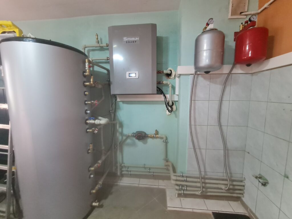 W ramach inwestycji dotychczasowa instalacji OV (5kW na dachu) została rozszerzona o dodatkowe 4kw zamontowane na barierkach balkonów i tarasu. Zainstalowaliśmy również pompę ciepła 12kw Sprun Select oraz przerobiliśmy instalacje hydrauliczną do nowych urządzeń.